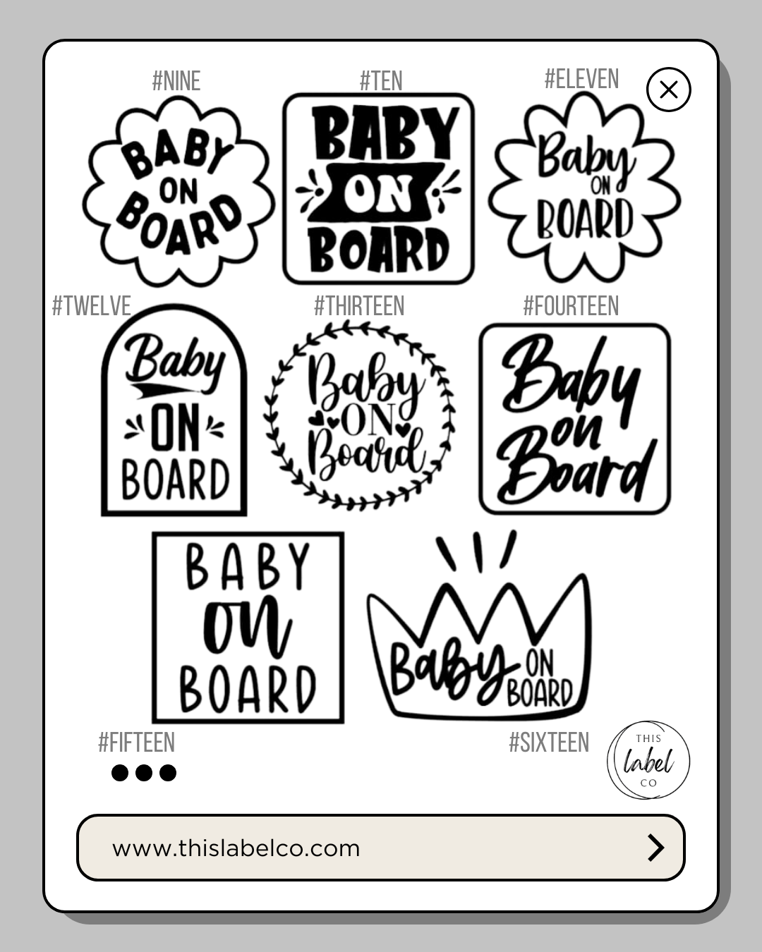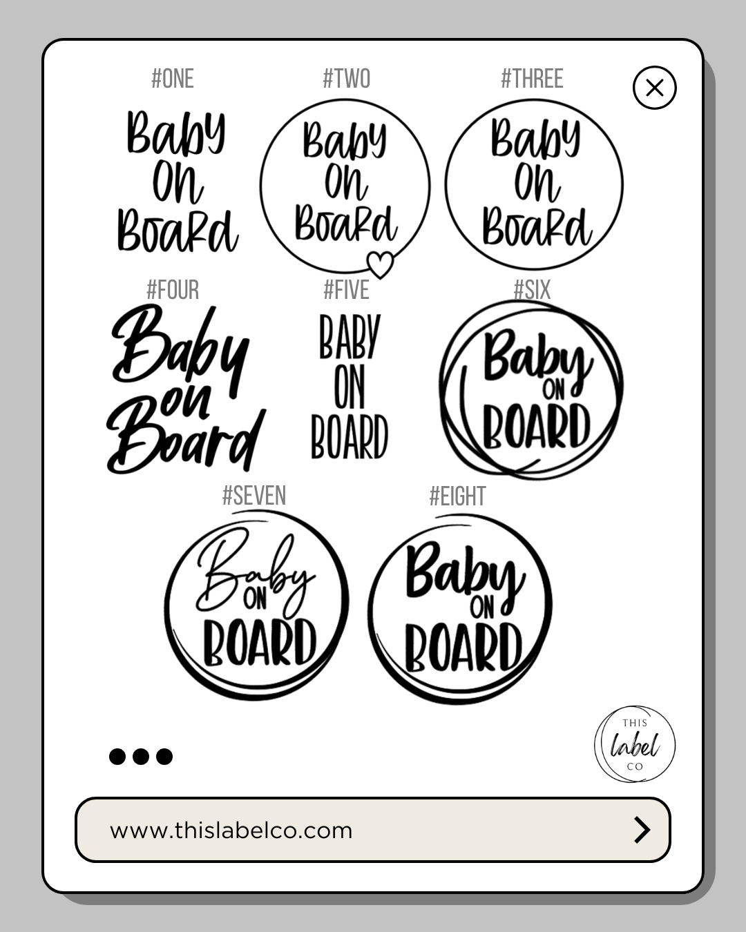 It wasn't until having kids of my own that I realised the lack of options at baby stores for the "Baby On Board" decals/signs? They are plain and boring and not really something I wanted to have permanently on our family car!! These labels give you some more options that you would be happy to put on your car and love the look of it. They're also a great little add on to a baby shower gift. They come in a handful of colours and style variations. If there is something specific (including customisation) that you are wanting, please send me a message and we can get what it is you want. The opportunities are endless. These decals - depending on the style you choose, will be Regular = approx. 9-10cm in H & W