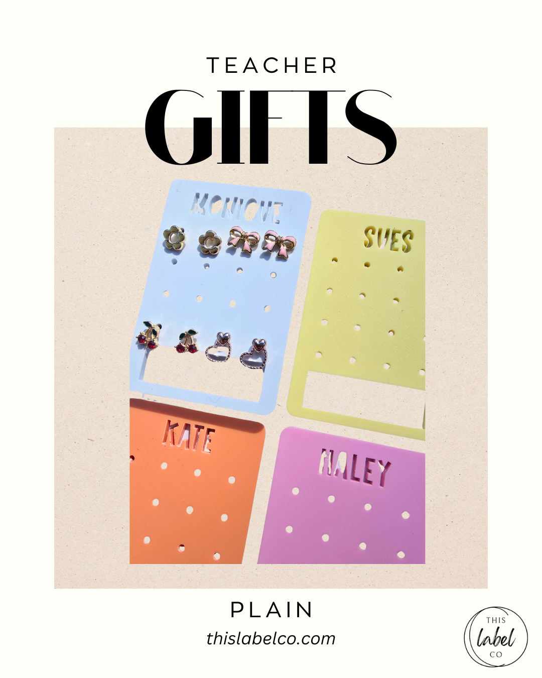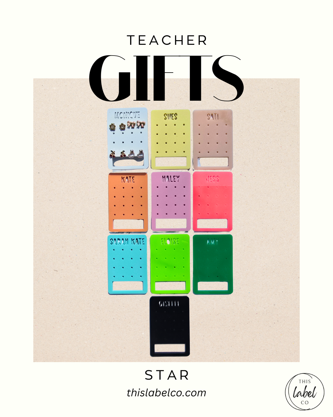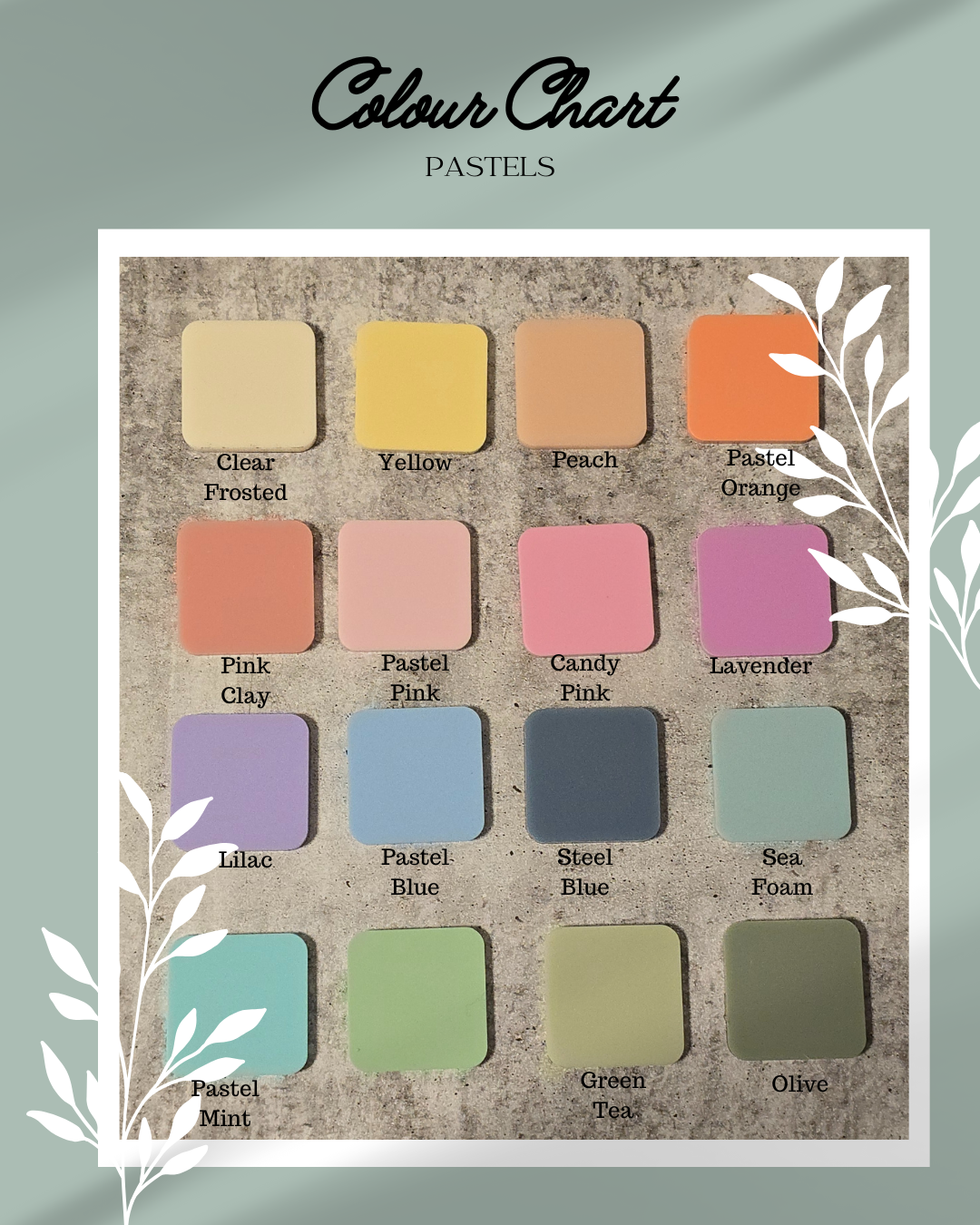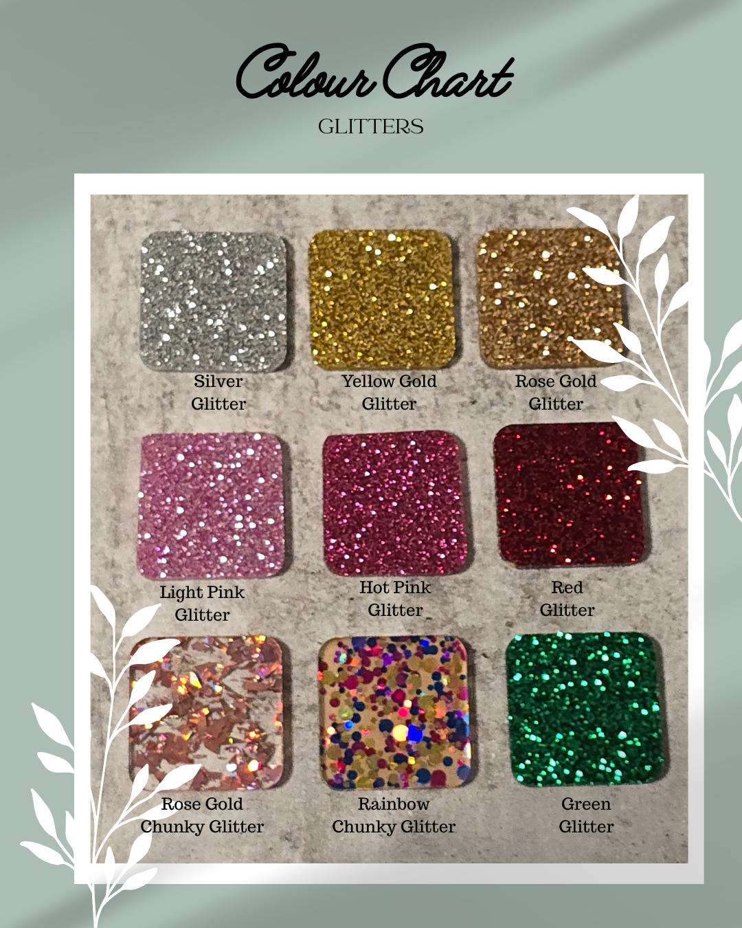 They are made of 3mm cast acrylic and come customised with a name, including spaces 8 pairs of studs, or 6 pairs of studs and 2 pairs of small dangly's.