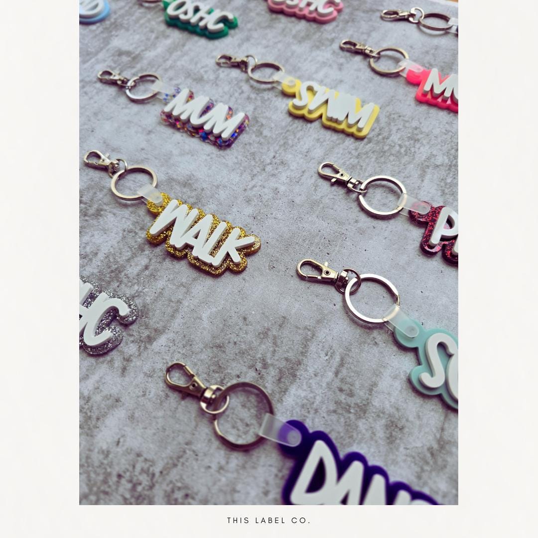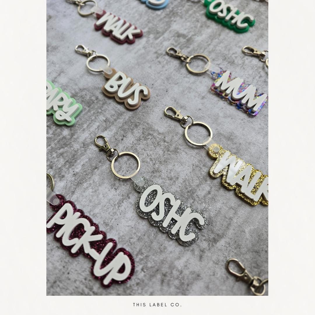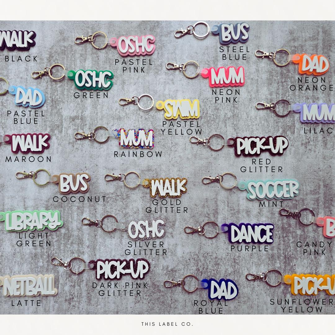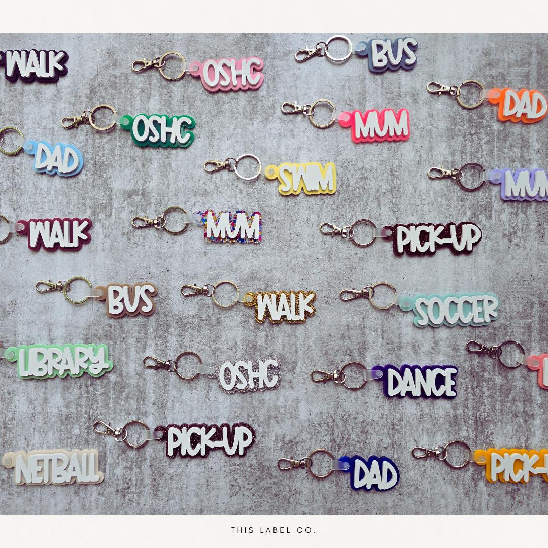 School Pick-up Reminder Acrylic Bag Tags | Double Layer Acrylic Keyring/Bag Tag | Kids Bag Tag | Acrylic Bag Tag |
